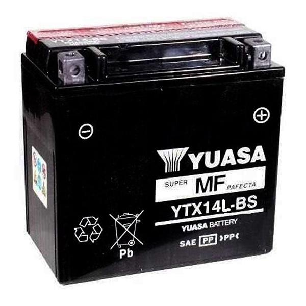 Baterai Yuasa YTX14L-BS Maintenance Free teknologi terbaru YUASA bebas perawatan dan umur pemakaian lebih panjang, kinerja lebih tinggi untuk memenuhi kebutuhan kelistrikan sepeda motor.