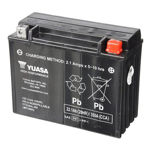 Baterai Yuasa YTX24HL-BS Maintenance Free – Baterai dengan teknologi terbaru YUASA bebas perawatan dan umur pemakaian lebih panjang dibanding type konvensional, mempunyai kinerja lebih tinggi untuk memenuhi kebutuhan kelistrikan sepeda motor. Bebas korosi serta segel pemanent tanpa harus mengisi air sebagai perawatan dan anti bocor.