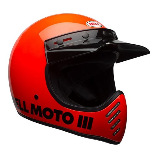 Helm Bell Moto-3 Classic Hi-Vis Gloss Orange merupaka helm model gaya abadi, sebagaimana model ini telah diproduksi oleh Bell puluhan tahun silam namu tetap eksing hingga saat ini. Produksi baru dengan konstruksi modern.