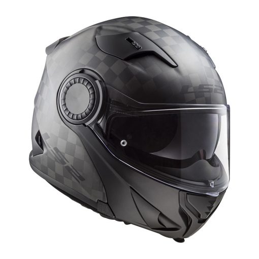 Helm LS2 FF313 Vortex Solid Matt Carbon Helm modular yang sangat ringan, elegan dan nyaman terbuat dari serat karbon dengan rahang penjaga dagu (KPA). Memiliki pelindung visor matahari terpadu dan sistem ventilasi yang sangat optimal.