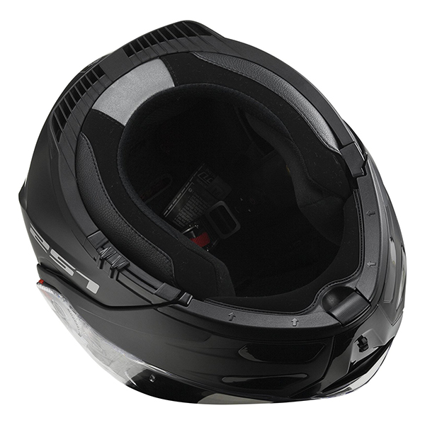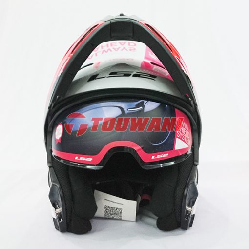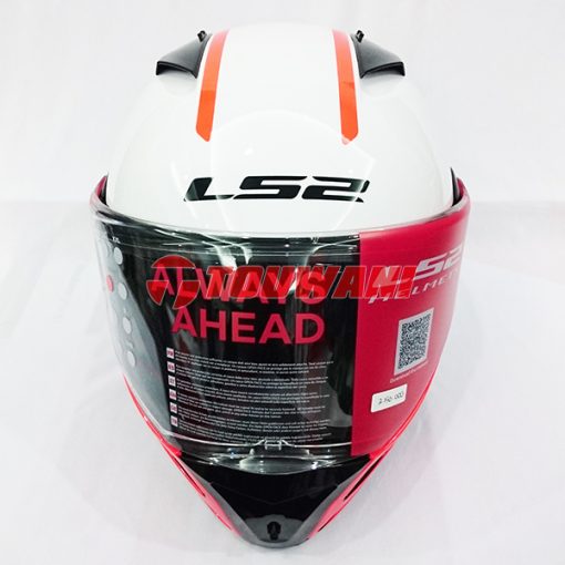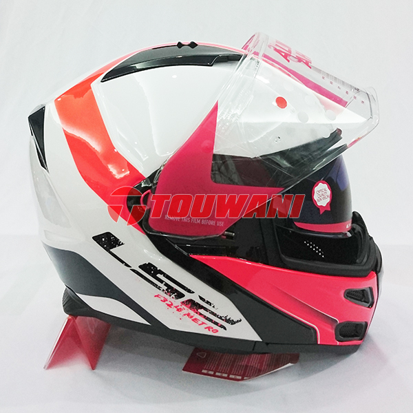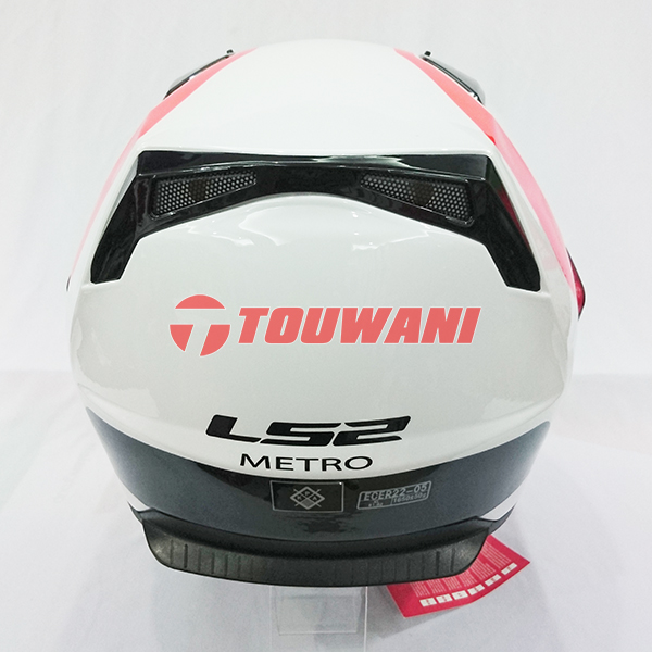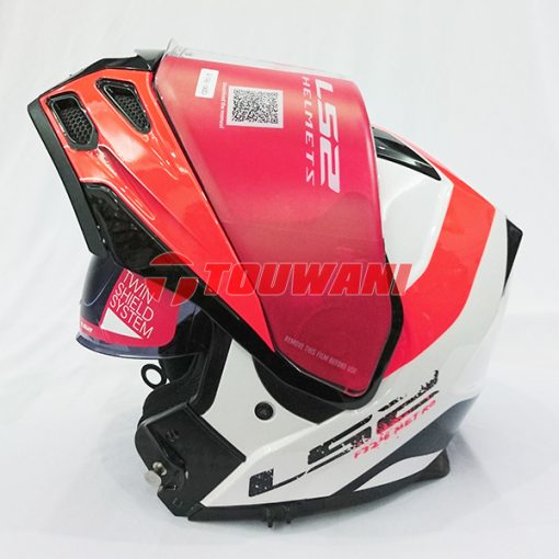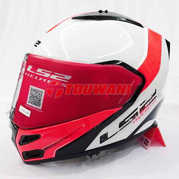 Helm LS2 FF324 Metro Rapid White Red modular slim-fit, ringan dilengkapi sun visor, anti kabut tali model micrometic rilis cepat, bantalan helm mudah dilepas untuk pencucian.