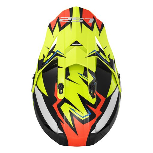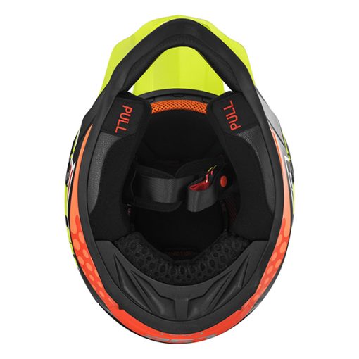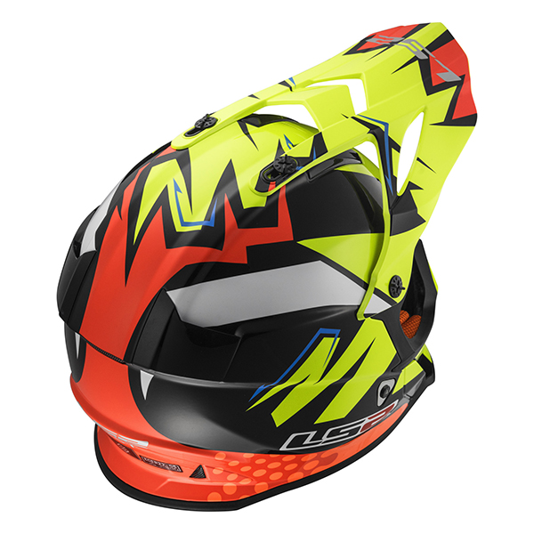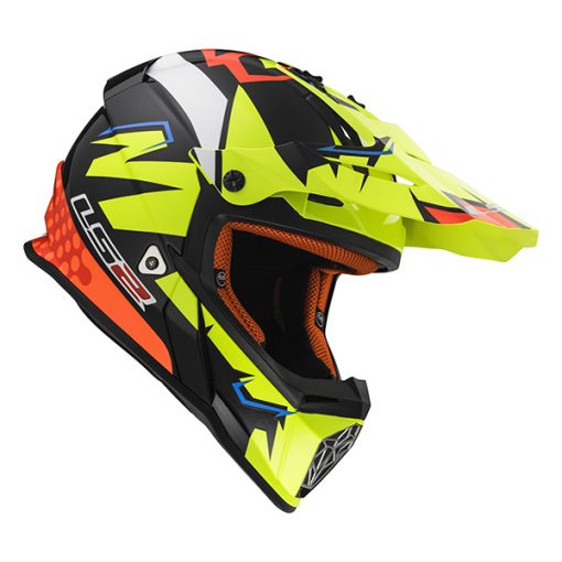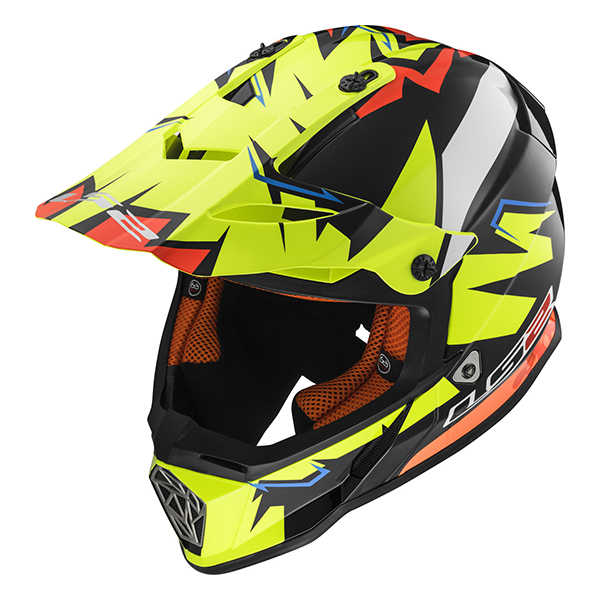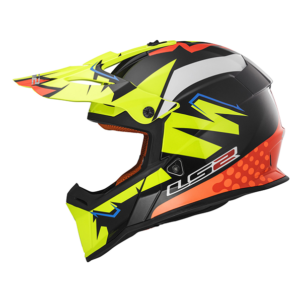 Helm LS2 MX437 Fast Volt Black Yellow Orange ringan berteknologi ventilasi optimal dan sistem rilis darurat (Emergency). Bantalan helm bagian dalam mudah dilepas untuk proses pencucian / perawatan.