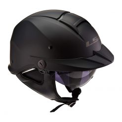 Helm LS2 OF590 Rebellion Matt Black adalah helm setengah untuk sepeda motor dengan cangkang penuh gaya yang terbuat dari Kinetic Polymer Alloy (KPA) kinerja tinggi yang ringan dari LS2 Helmets.