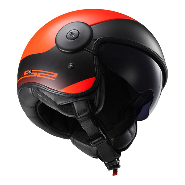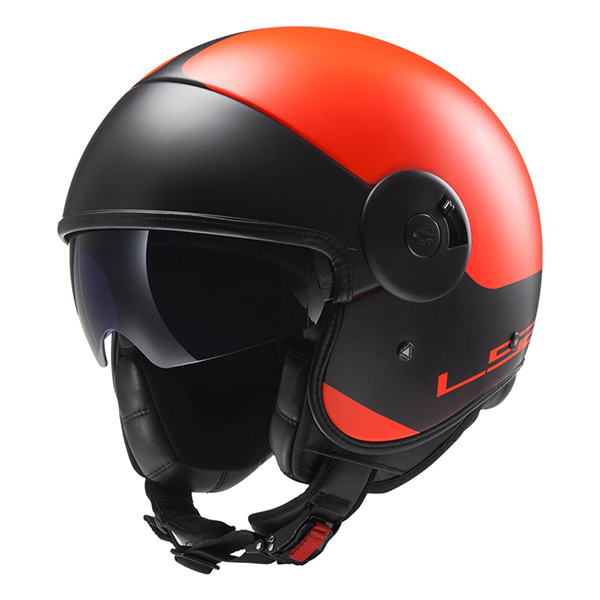 Helm LS2 OF597 Cabrio HPFC VIA Matt Orange black dengan inovasi terbaru memperkenalkan helm half face dengan shell serat komposit sangat kuat berbobot ringan.
