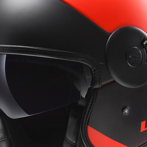 Visor helm LS2 OF597 Cabrio dibentuk oleh polikarbonat kelas tertinggi, menggunakan optikal 3D, ini benar-benar resistensi terbaik terhadap perubahan iklim, menghindari distorsi serta memberi kejelasan vision secara maksimal terhadap visor. Visor Twin Sistem Visor drop-down anti sinar UV membantu melindungi mata pengendara dari matahari, mudah dioperasikan naik turun ketika memasuki terowongan gelap, membuat berkendara lebih nyaman. Anti Gores Melindungi permukaan visor terhadap dampak abrasif kecil. Anti sinar UV Treament visor dengan lapisan yang jelas anti UV. Anti Kabut Fitur anti kabut Dapat terintregrasikan dengan opsional visor yang lebih luas.