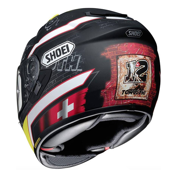 Helm Shoei GT-Air Luthi TC-3 Yellow Black dilengkapi visor VPS untuk perjalanan jauh optimal melindungi pandangan terhadap terik matahari. Desain aerodinamis interegrasi dengan ventilasi udara dan teknologi untuk mengurangi suara bising.