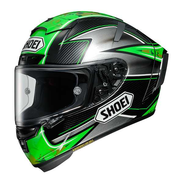 Helm Shoei X-Fourteen Laverty TC-4 helm full face untuk balap profesional dikembangkan secara nyata melalui ajang road race top dunia termasuk MotoGP. Semua bagian shell, visor, interior dan perangkat aerodinamis dikembangkan dengan mengutamakan keamanan tingkat tinggi dan menggunakan teknoligi paling canggih. tak hanya itu Shoei juga banyak mendapat dukungan dari para pembalap profesional untuk menghasilkan helm premium. X-Fourteen adalahhelm balap line-up teratas dari Shoei Helmets.