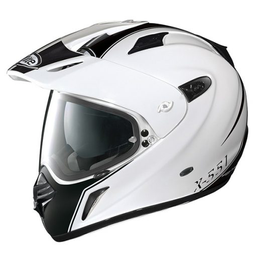Helm X-Lite X551 Hyper N-Com Metal White helm dual sport dilengkapi anti-fog PINLOCK®, sun visor dan tali pengaman DD Ring. Inner helm dapat dilepas untuk perawatan dan terinteasi alat komunikasi.