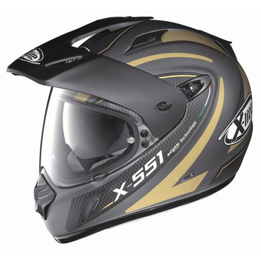 Helm X-Lite X551 Shift N-Com Flat Lava Grey dual sport cocok digunakan adventure dan motor sport, dengan serat komposit yang dirancang untuk pengendara supermoto, jalan enduro serta motor sport.