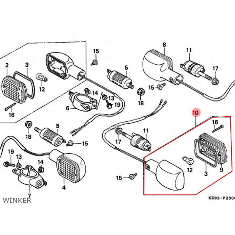 Honda 33650-KR3-660 Winker Assy L RR ini cocok dengan model kendaraan dan komponen berikut: