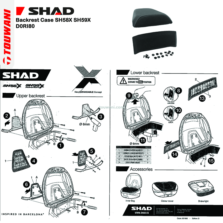 Sandaran ganda khusus untuk casing atas SHAD SH58X dan SH59X