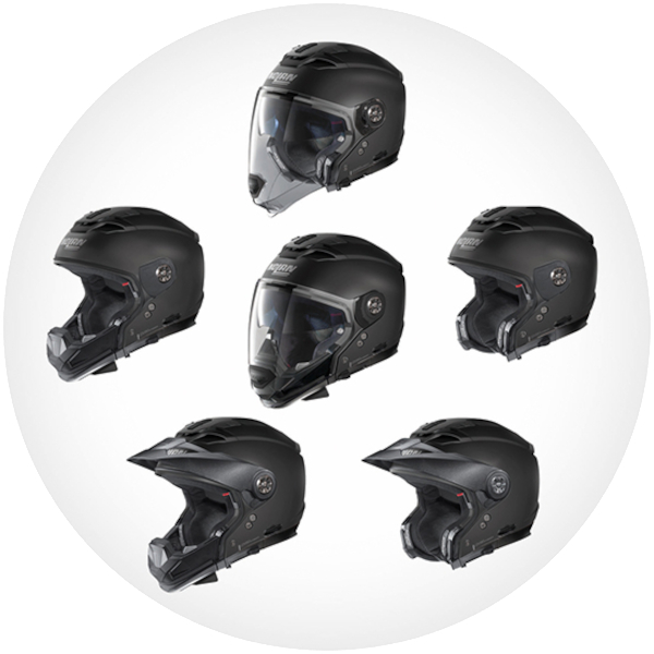 Helm dapat digunakan dalam enam konfigurasi berbeda. N70-2 GT sebenarnya ditandai dengan adanya tiga elemen (visor, pelindung dagu yang dapat dilepas dan puncak) yang dapat dipasang ke helm secara individual, berpasangan (visor atau puncak + pelindung dagu) atau dilepas seluruhnya.