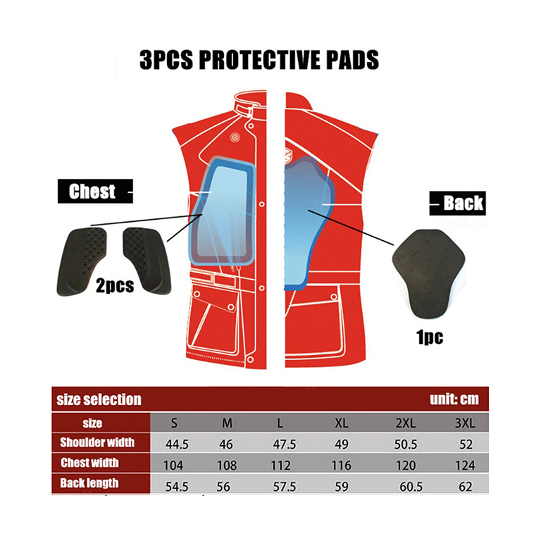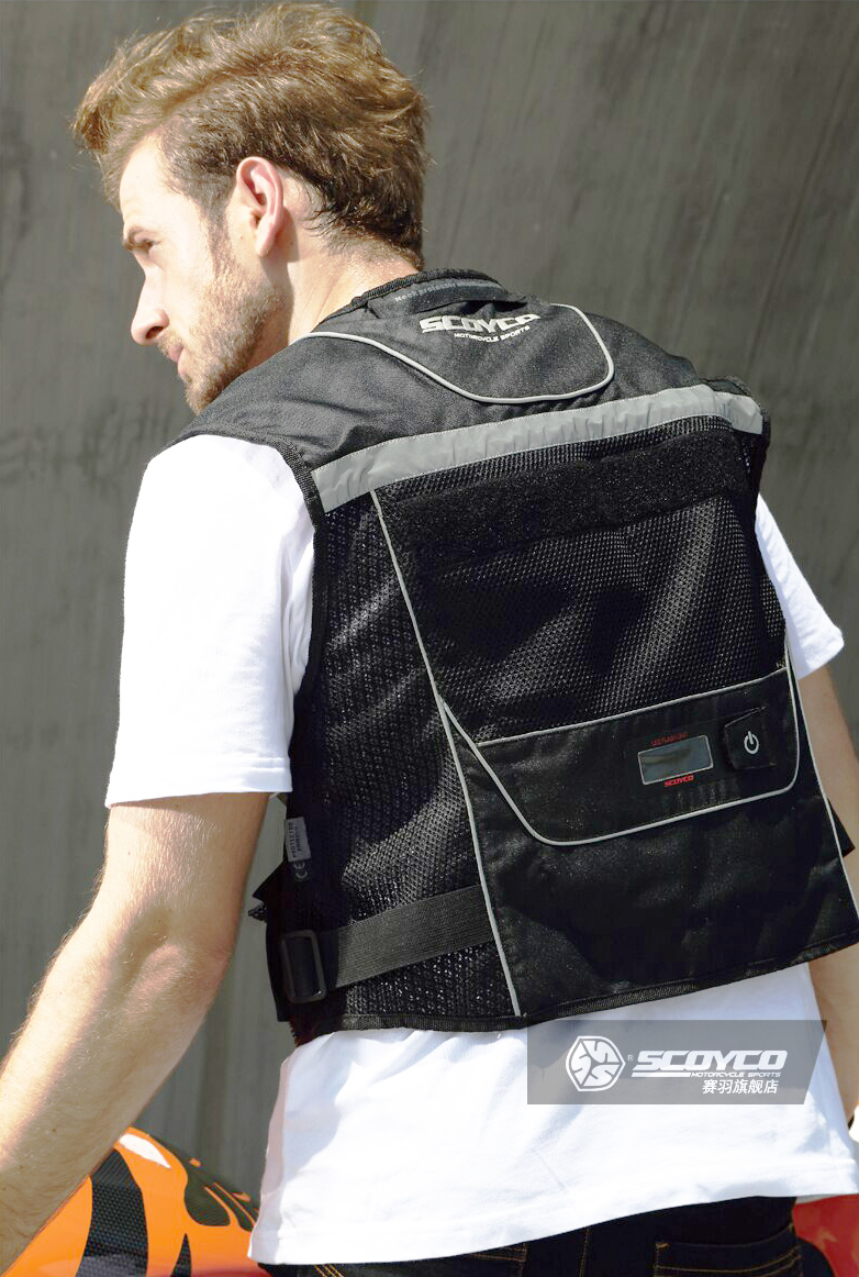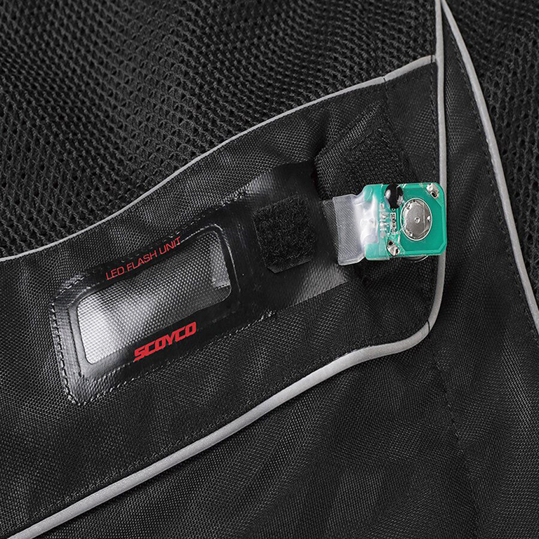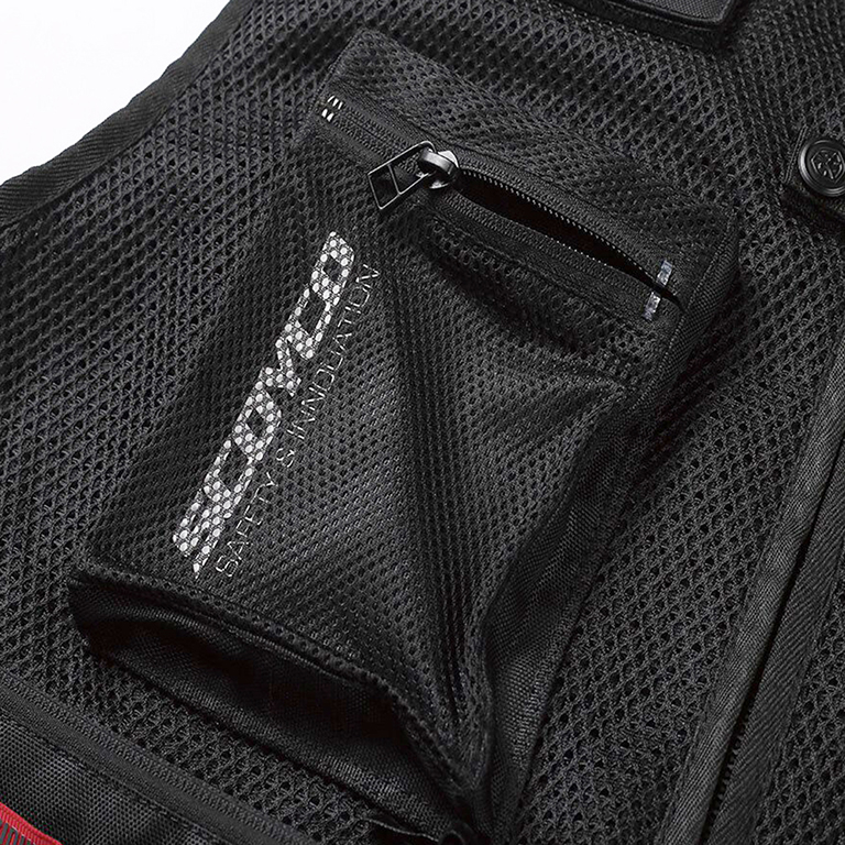 Bahan reflektif di bahu dan punggung untuk visibilitas pada malam hari secara langsung menambah keamanan pengendara