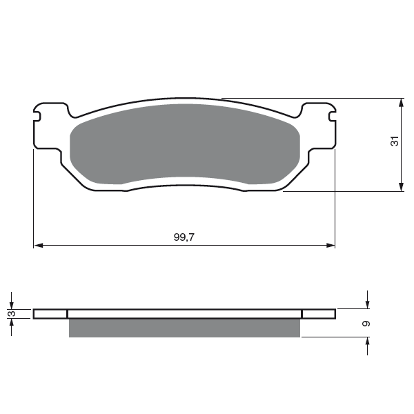 - Interaksi rendah abrasif dengan bahan rotor rem Tiga (3) kali + / – lebih awet karena menggunakan bahan komposit organik dan kevlar